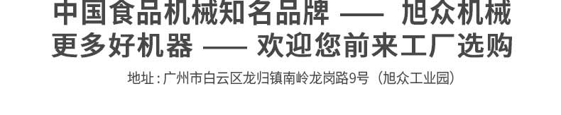 廣州旭眾食品機(jī)械有限公司是一家集科研開發(fā),生產(chǎn)設(shè)計(jì),營(yíng)銷服務(wù)為一體的現(xiàn)代化生產(chǎn)企業(yè)?,F(xiàn)代化生產(chǎn)車間,精湛制造技術(shù),所產(chǎn)機(jī)械歷經(jīng)市場(chǎng)重重考驗(yàn),不斷贏得海內(nèi)外客戶的贊譽(yù)。