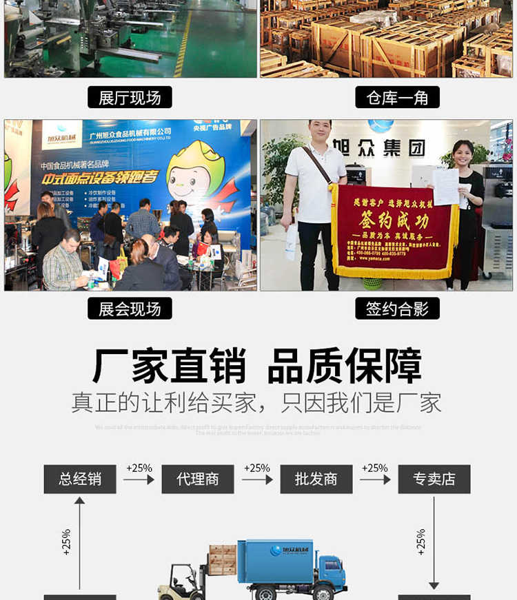 廣州旭眾食品機械有限公司是一家集科研開發(fā),生產(chǎn)設(shè)計,營銷服務(wù)為一體的現(xiàn)代化生產(chǎn)企業(yè)?,F(xiàn)代化生產(chǎn)車間,精湛制造技術(shù),所產(chǎn)機械歷經(jīng)市場重重考驗,不斷贏得海內(nèi)外客戶的贊譽。