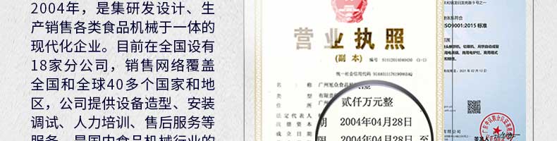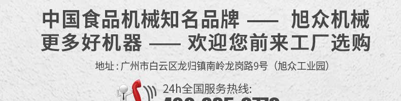 廣州旭眾食品機械有限公司是一家集科研開發(fā),生產(chǎn)設(shè)計,營銷服務(wù)為一體的現(xiàn)代化生產(chǎn)企業(yè)?,F(xiàn)代化生產(chǎn)車間,精湛制造技術(shù),所產(chǎn)機械歷經(jīng)市場重重考驗,不斷贏得海內(nèi)外客戶的贊譽。