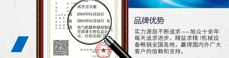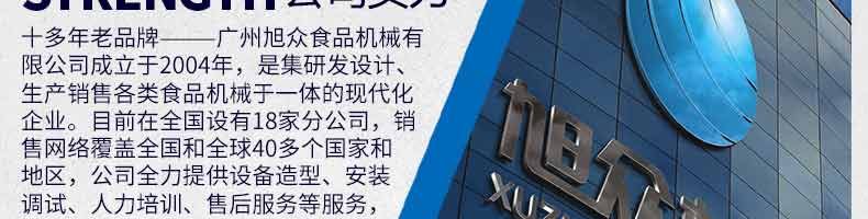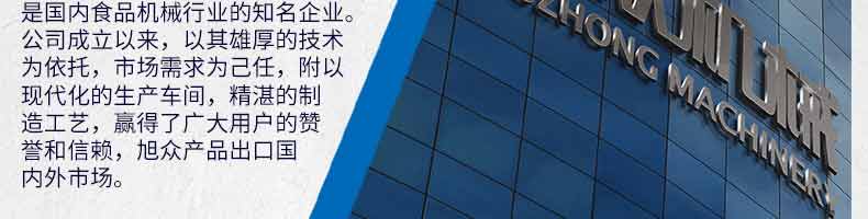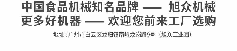 廣州旭眾食品機械有限公司是一家集科研開發(fā),生產設計,營銷服務為一體的現代化生產企業(yè)。現代化生產車間,精湛制造技術,所產機械歷經市場重重考驗,不斷贏得海內外客戶的贊譽。