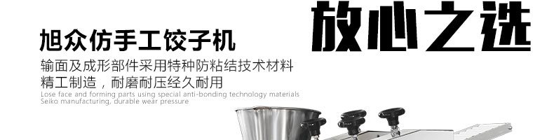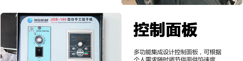 JGB-180餃子機(jī),先進(jìn)的自動(dòng)餃子生產(chǎn)設(shè)備,包括主動(dòng)壓皮部分、自動(dòng)供餡部分、自動(dòng)包合部分、自動(dòng)成品輸送部分,并且只要更換模具,就可制鍋貼等食品。適合食品速凍廠、飯店、廠礦學(xué)校食堂等制作包餡面制品單位使用。