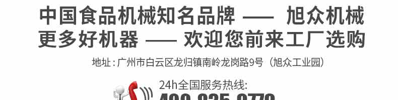 廣州旭眾食品機械有限公司是一家集科研開發(fā),生產(chǎn)設(shè)計,營銷服務(wù)為一體的現(xiàn)代化生產(chǎn)企業(yè)。現(xiàn)代化生產(chǎn)車間,精湛制造技術(shù),所產(chǎn)機械歷經(jīng)市場重重考驗,不斷贏得海內(nèi)外客戶的贊譽。