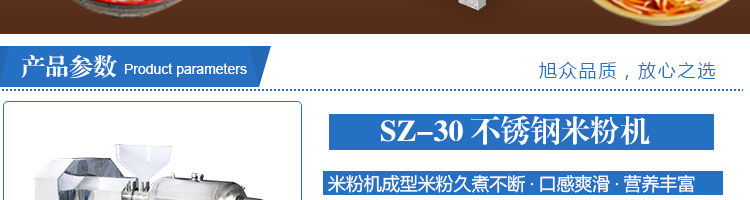 SZ-30不銹鋼米粉機,可生產(chǎn)米粉、米線、桂林米粉、過橋米線、年糕、糍粑等產(chǎn)品。各種形狀都可生產(chǎn)(圓、扁),加工食品外表光滑,厚薄、寬窄、粗細均勻可調(diào),筋軟適度,有彈性,口感柔軟、味道純正。