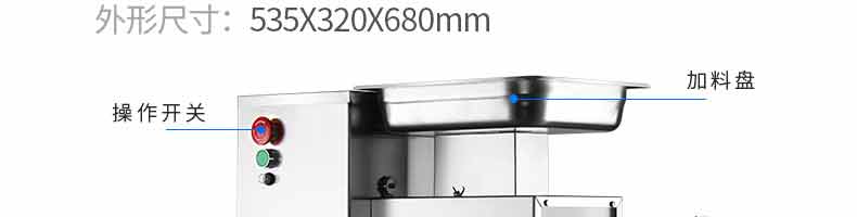 XZ-QX320-切肉機(jī),小型切肉機(jī)是一款主要對(duì)肉類進(jìn)行加工的設(shè)備,配置單層刀具一次性切肉片,二次切肉絲,再切成料。刀具采取外置懸臂式設(shè)計(jì),拆洗方便,衛(wèi)生更有保障;配置多種刀具,可加工不同厚度的肉片,實(shí)現(xiàn)一機(jī)多用;機(jī)內(nèi)裝有安全保護(hù)開頭,刀具外露時(shí),機(jī)器自鎖不能啟動(dòng),以保安全;卸下的刀具,不用清洗直接放置在6攝氏度以下的冰箱里,刀具余肉不發(fā)臭。刀片用特殊不銹鋼材料制造,經(jīng)久耐用。