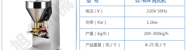 SZ-604肉丸成型機(jī),肉丸成型機(jī)采用不銹鋼材質(zhì),丸子直徑可達(dá)15-35mm,可以制作各類爽脆,有韌性、有彈性的豬肉丸、魚丸、牛肉丸、貢丸、雞肉丸等