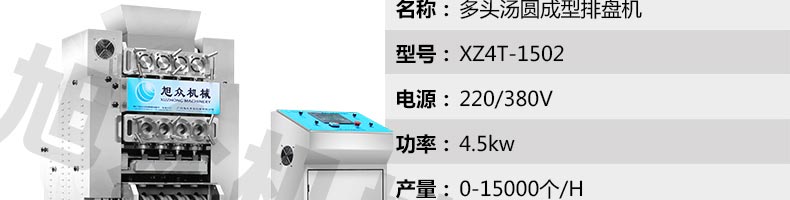 XZ4T-1501多功能搓圓擺盤機(jī)/湯圓機(jī),本機(jī)只要將面團(tuán)放入進(jìn)料口,開機(jī)便可自動搓圓、成型的設(shè)備,一次性成型四次產(chǎn)品,制品不易變形,工作效率高,相當(dāng)于15-20個(gè)工人同時(shí)手工制作湯圓,并可自動排盤,真正的低投入、高收效、省錢省工。