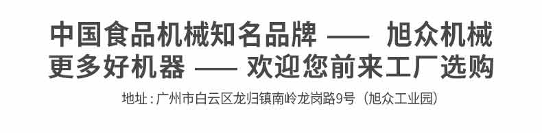 廣州旭眾食品機械有限公司是一家集科研開發(fā),生產(chǎn)設計,營銷服務為一體的現(xiàn)代化生產(chǎn)企業(yè)?,F(xiàn)代化生產(chǎn)車間,精湛制造技術,所產(chǎn)機械歷經(jīng)市場重重考驗,不斷贏得海內(nèi)外客戶的贊譽。