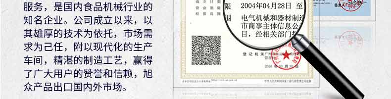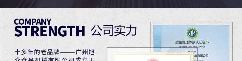 廣州旭眾食品機械有限公司是一家集科研開發(fā),生產(chǎn)設(shè)計,營銷服務(wù)為一體的現(xiàn)代化生產(chǎn)企業(yè)?,F(xiàn)代化生產(chǎn)車間,精湛制造技術(shù),所產(chǎn)機械歷經(jīng)市場重重考驗,不斷贏得海內(nèi)外客戶的贊譽。