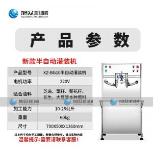 名稱半自動灌裝機 電源220v 功率 產(chǎn)量10-25公斤 尺寸700*500*1360mm 重量60kg 規(guī)格 其他
